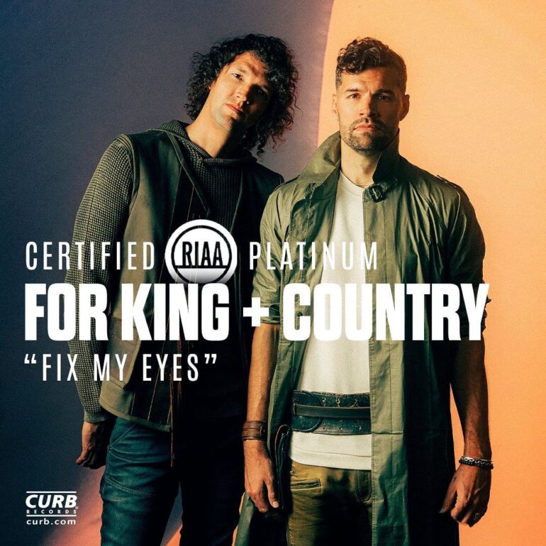 Parabéns ao For KING + COUNTRY por sua música “Fix My Eyes” ter sido certificada como Platina pela RIAA.